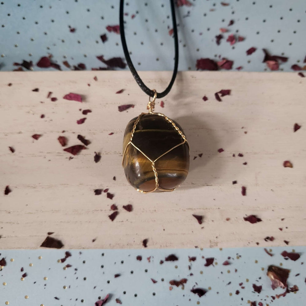 Tiger Eye is a variety of Quartz and a pseudomorph (meaning false form) replacement of Crocidolite. It forms when Crocidolite has its chemical fibers replaced by silica. Its colors are generally a combination of golden browns, yellow, beige or tan. Tiger Eye helps one access their inner strength and channel it towards their personal needs and desires. This may come in the forms of creativity, drive, determination, and increased focus.