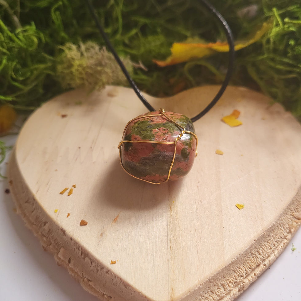 Unakite is a kind of stone containing pink Orthoclase feldspar, green Epidote, and quartz particles. It has a characteristic speckled green and pink look. This gemstone is said to provide you harmonious connections and is a healing stone, with the greens increasing vitality and the pink bringing affection and empathy.